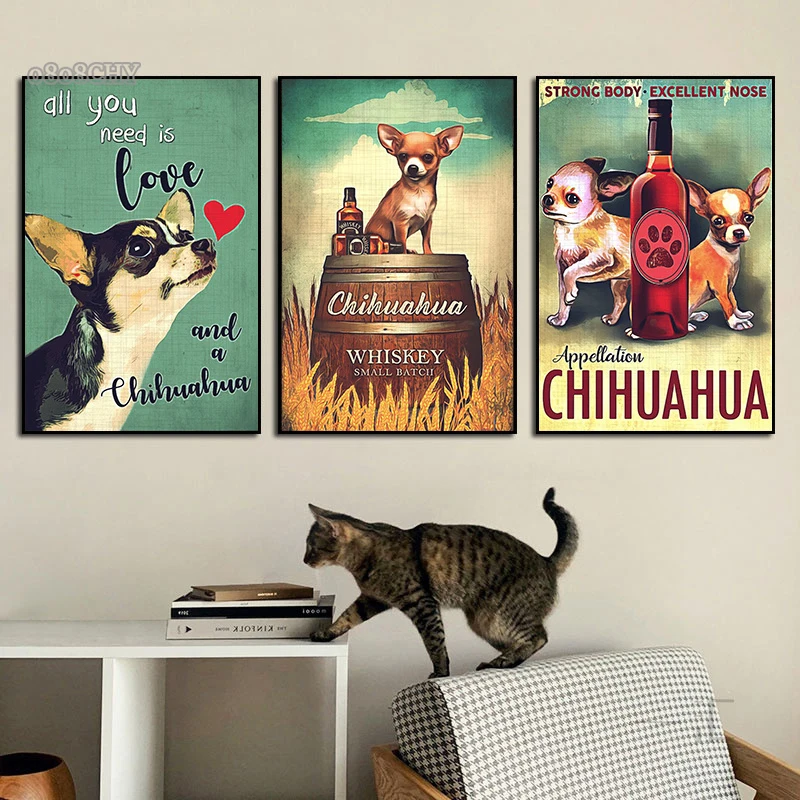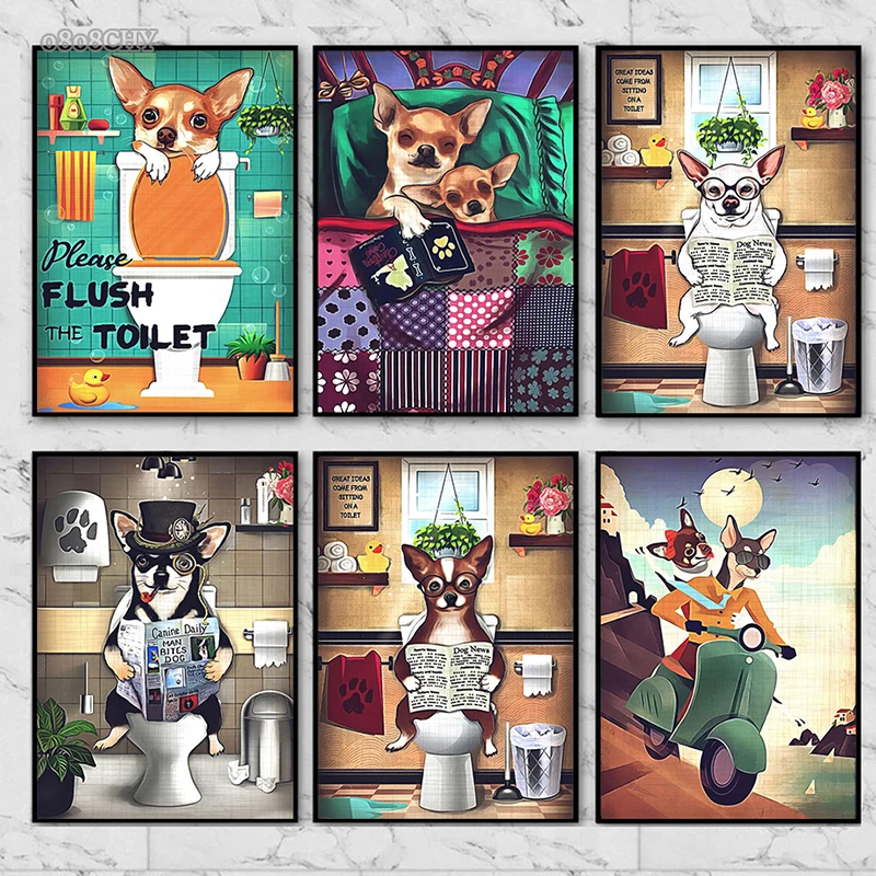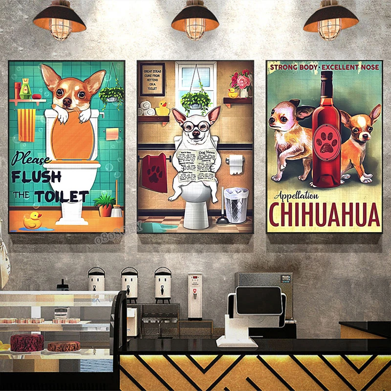 Whimsical Chihuahua Wall Art: A Funny Take on Bar, Cafe Shop, Bathroom Decor