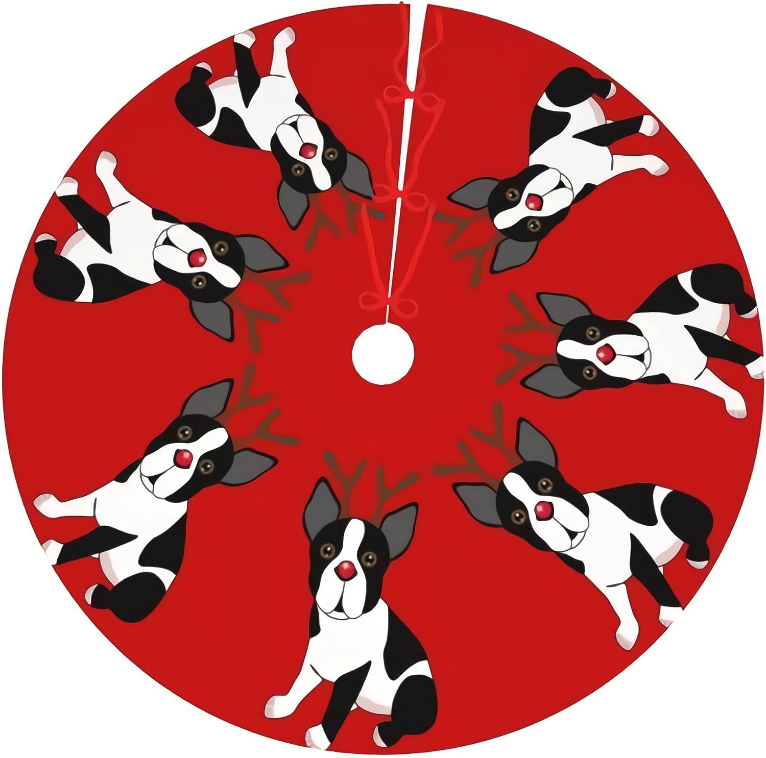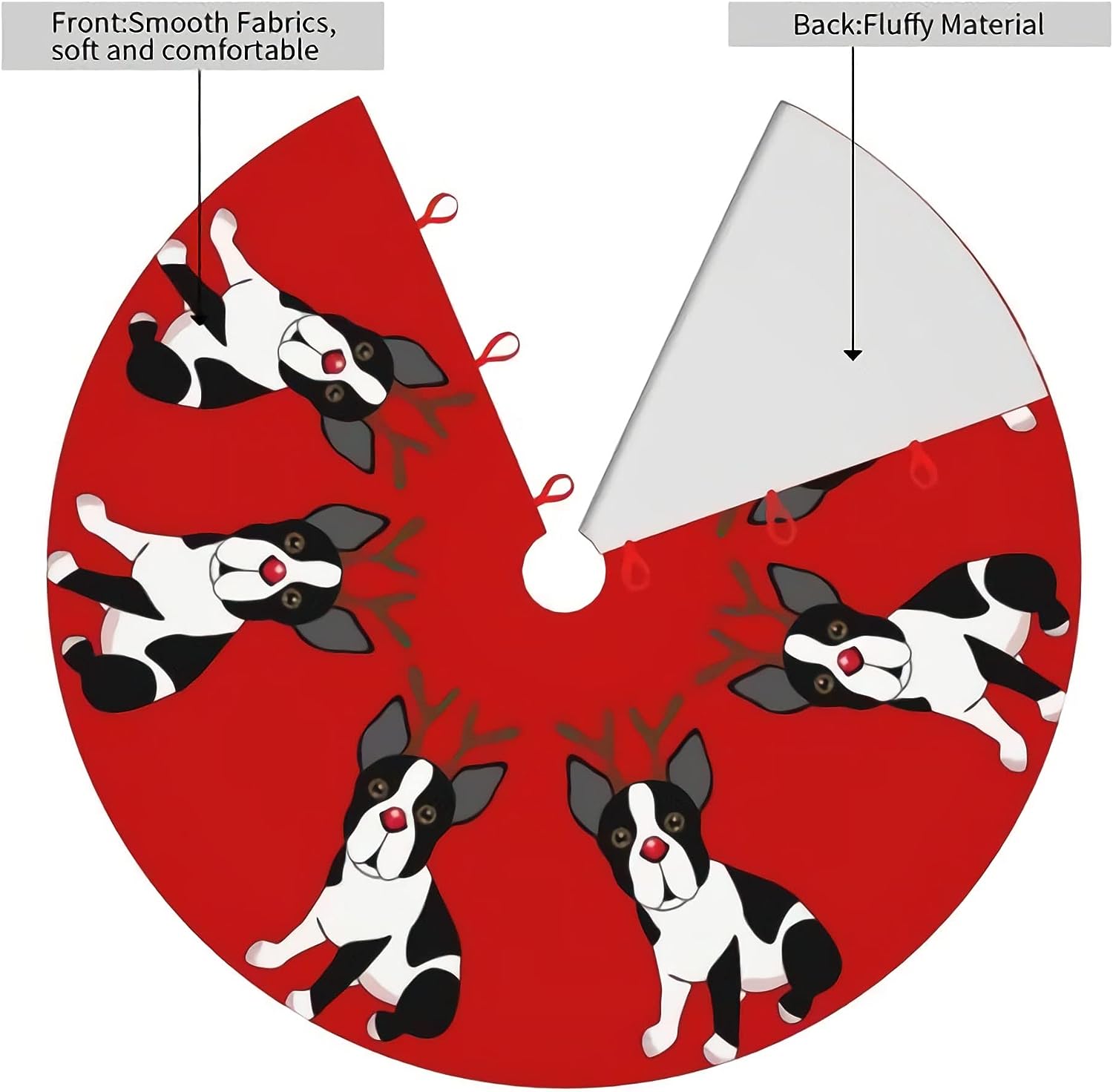 Boston Terrier Reindeer Christmas Tree Skirt – Plush Santa Holiday Tree Mat for Festive Décor